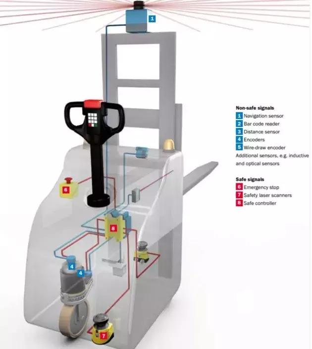 上述所有安全元件必须由安全plc或继电器管理,安全plc或继电器管理所有设备并确保安全分类。其主要功能是保证车辆随时停车。