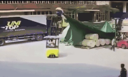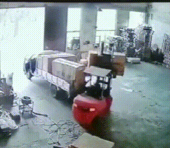 紧急时刻,司机在未摘档、未熄火的情况下跳车制止。然而不幸的是,货物损失避免了,但叉车司机却被卷入了车轮下!