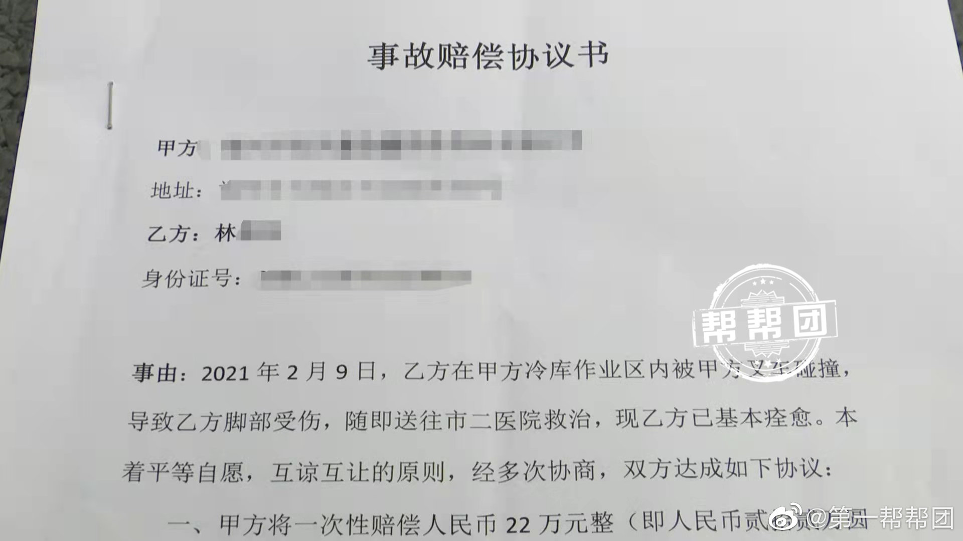 【工人被叉车撞断腿,调解介入沟通,赔偿尾款到位】林先生在福州马尾某食品公司工作,今年2月份,在一次点收货物时,被一家冷冻厂的叉车撞伤,导致腿部骨折,被鉴定为十级伤残。今年九月,林先生和两家公司签署一次性赔偿协议,两家公司共赔偿林先生22万元,协议签署当天,转账给林先生10万元,剩余的12万元在之后的两个月内付清。但两个月时间已过,林先生还未收到余款。调解小组介入帮忙后了解到,原来林先生工作的食品公司有给员工购买意外保险,公司方面希望林先生能够配合公司办理理赔手续,但林先生不配合办理相关理赔手续,同时提出配合办理的话要增加三万元的赔偿,公司对此有疑义,也就导致了12万元的余款迟迟没有支付。经过调解员的沟通和解释,双方进行了面对面沟通,最后约定,本周内林先生配合公司办理理赔手续,公司同时将12万元余款转账给林先生。#帮帮团快讯# Via@第一帮帮团