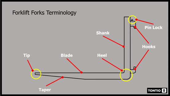 确保货叉和货叉的平直度-如果铲刀或铲刀弯曲,则将无法再使用前叉。